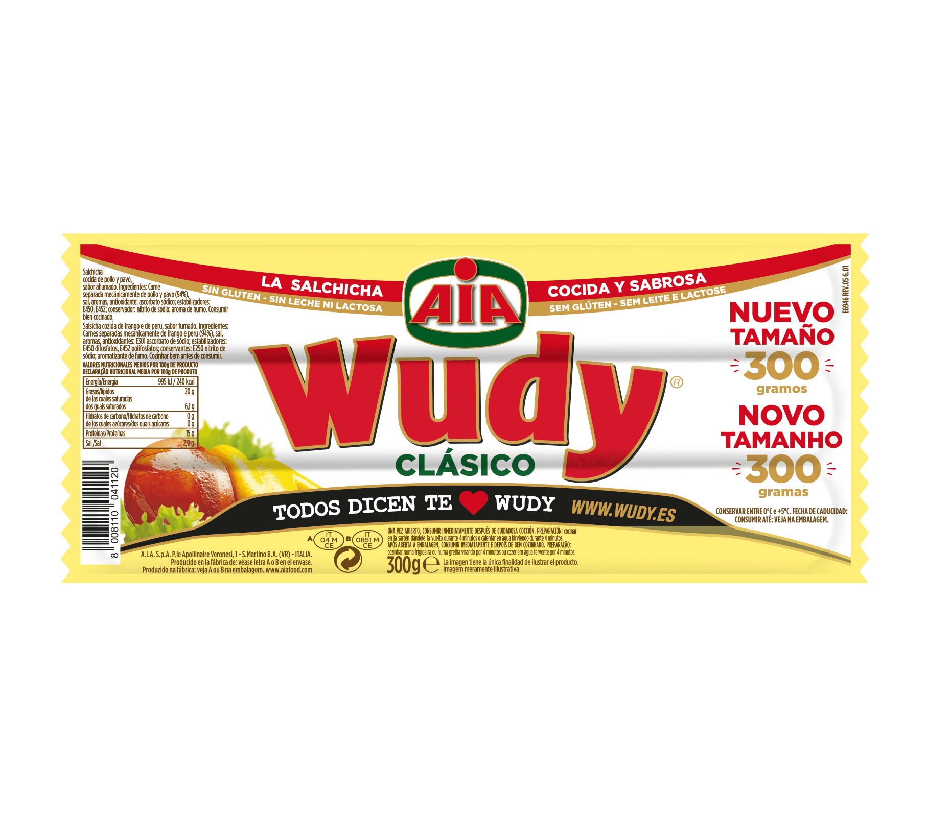 Disfruta del clásico Wudy ya sea a la parrilla, girándolo durante 4 minutos, o en agua hirviendo durante 4 minutos.
